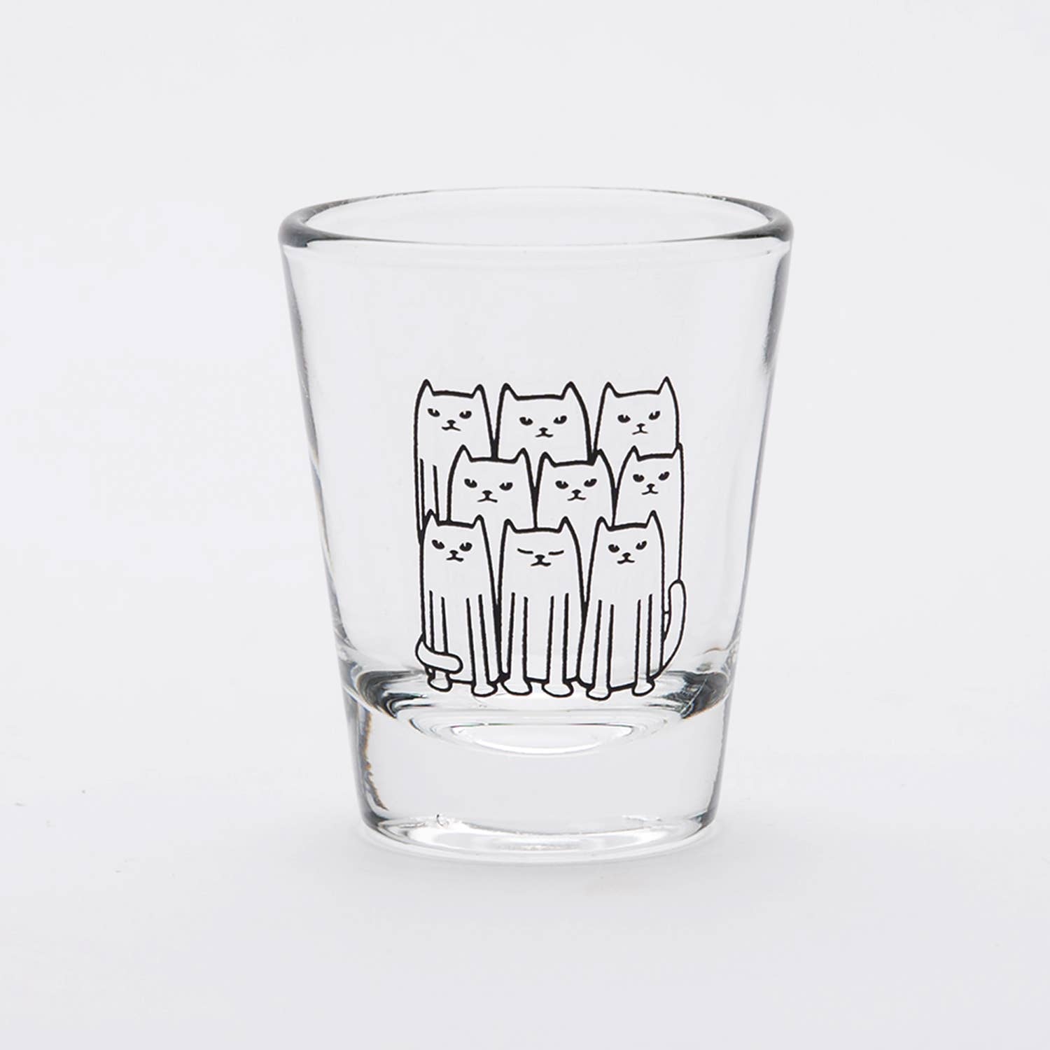 Have fun with this whimsical shot glass. Who can pass up these adorable kitty cats? Printed with black ink. Top rack dishwasher safe. 2 oz. shot glass.